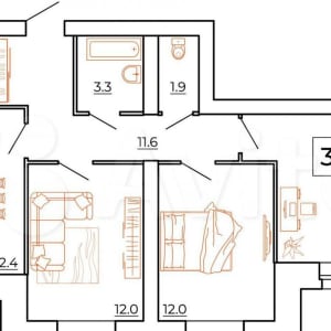 - Комнат в квартире: 3