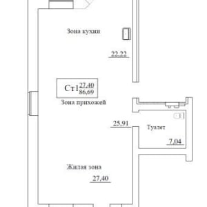 Выcота потолков 3 м. Квартиры-студии свободной планировки.