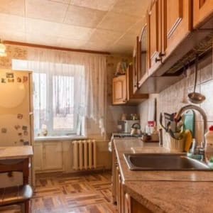Просторная кухня 9,1 кв. метров позволит вместить всю семью за обеденным столом. Санузел раздельный, трубы пластиковые, установлены счётчики на воду. Ванная комната обшита панелями, туалет облицован кафелем. Лоджия 12 кв. метров не застеклена.