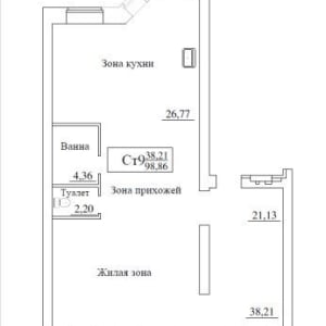 Выcота потолков 3 м. Квартиры-студии свободной планировки.