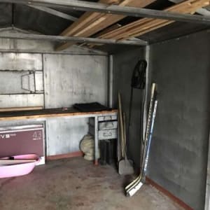 Стоит на железобетонных блоках (не на земле). Железо крепкое.Пол железный, имеется верстак с ящиками для инструментов, тески, прихожая.