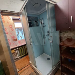 Места общего пользования содержатся в чистоте и порядке. Кухня оборудована столами, раковиной, есть своя рабочая зона, место под плиту. Санузел на две семьи, закрывается на ключ, есть своя личная душевая кабина, которую также могут оставить новым собственникам.